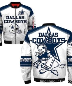 - This llight-weight Cowboys bomber jacket with a high collar, full-zip front, and side seam pockets completes a stylish look for cool weather.