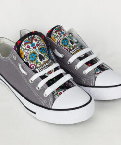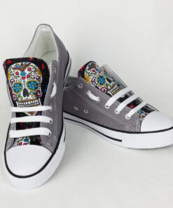 Skull Shoes Day of the Dead Gray Low Top Shoes V10